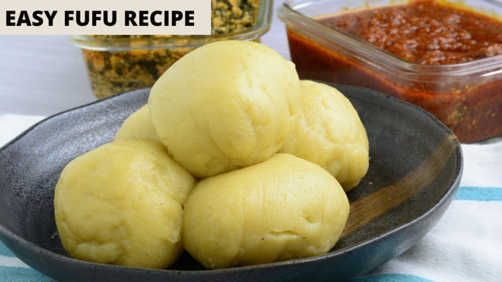 Fufu is easy to make, yet so delicious. It is not eaten alone, and it is served with a form of rich and flavorful soup or stew such as egusi soup, okra soup, ewedu soup (Jute leaves), or light soup.