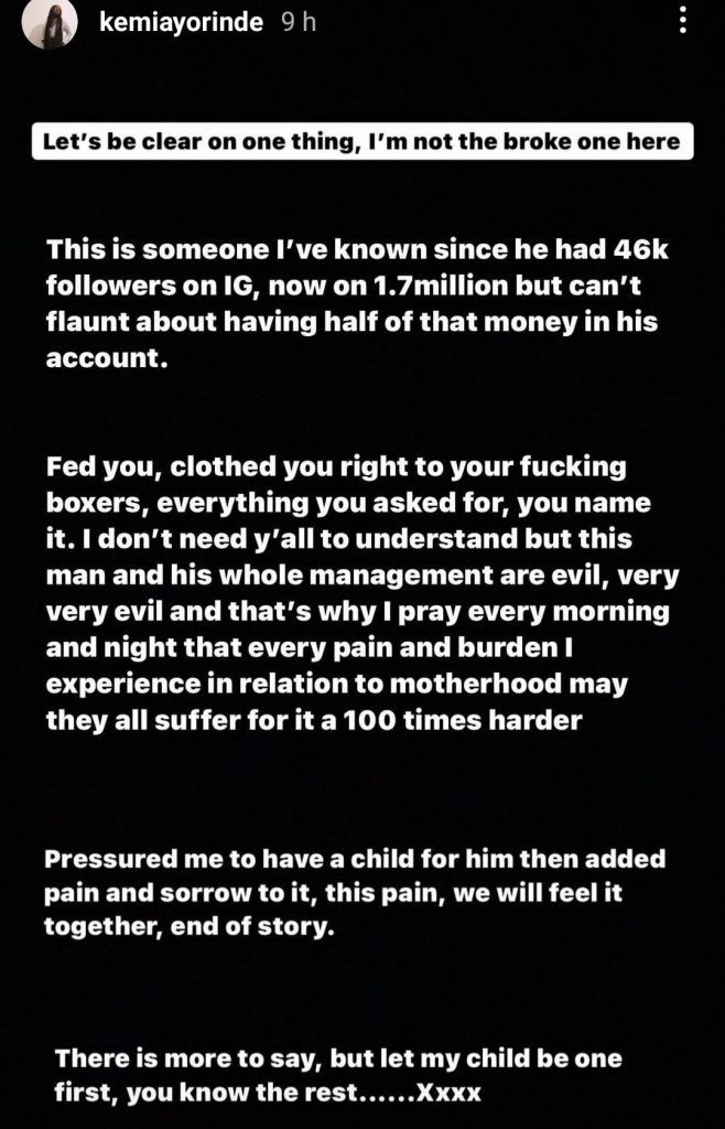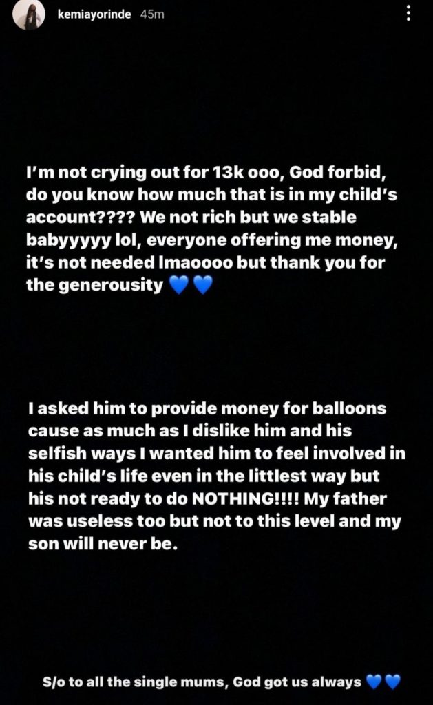 Lyta’s baby mama has called him out for failing to pay for his son’s birthday celebrations. Kemi Ayorinde, who has a son with him, took to Instagram stories to say that he does not contribute financially to the upkeep of their baby son.