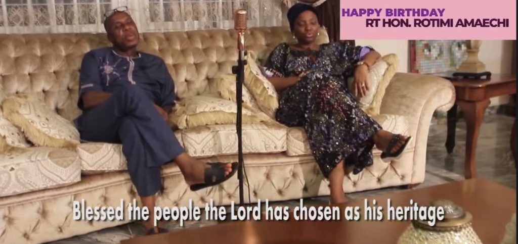 Rotimi Amaechi, Minister of Transportation, has released gospel music with his wife, Judith. A video circulated on the internet shows the pair singing.