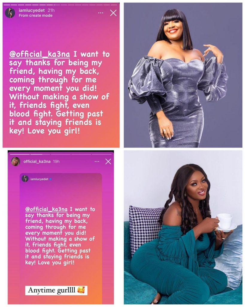 Lucy came to her Instagram story less than 48 hours after the show aired, expressing her love for Ka3na despite their differences.