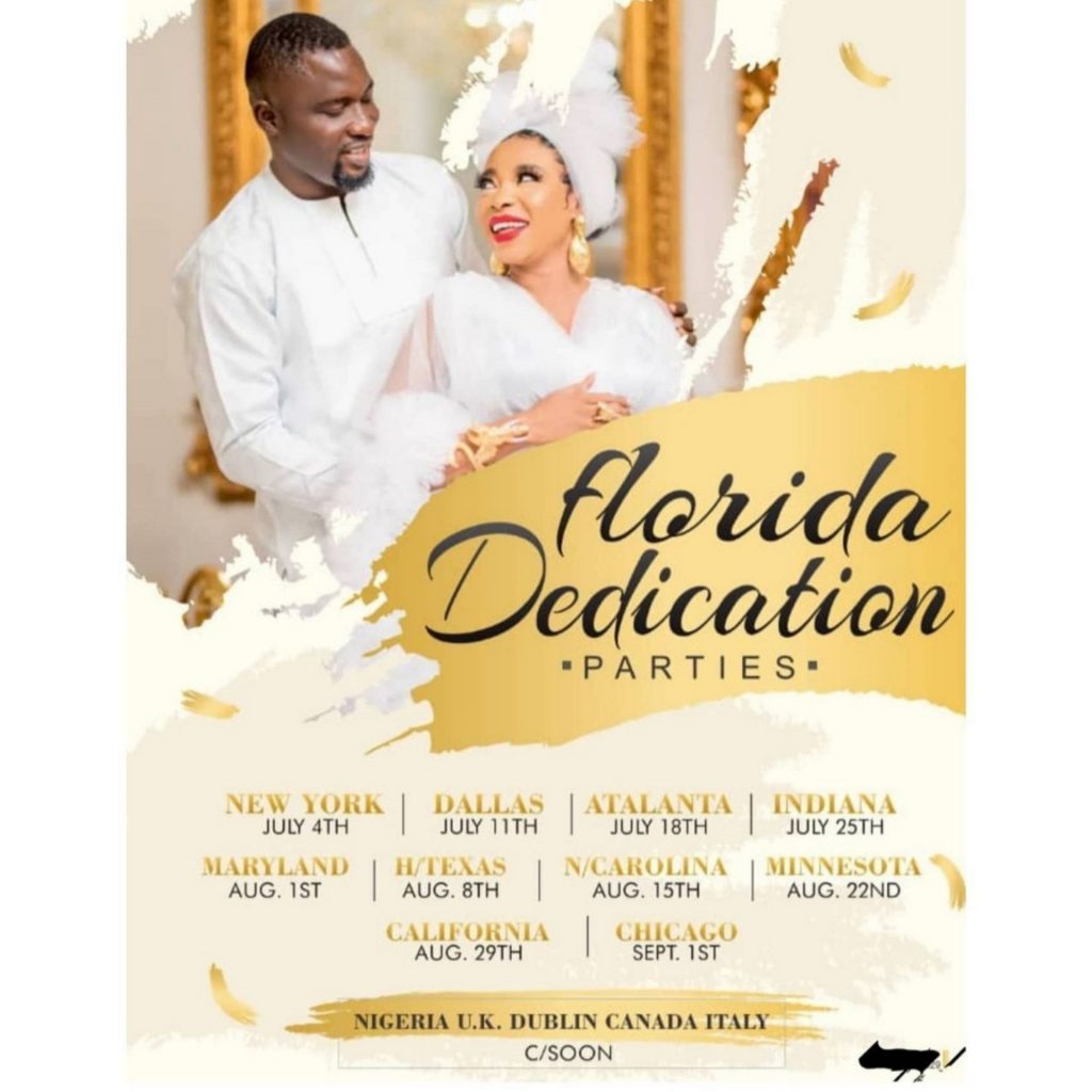 The invite adds that the dates and locations for the dedication party to be held in Nigeria, UK, Dublin, Canada, and Italy will be announced soon.
