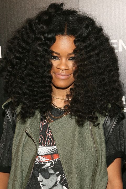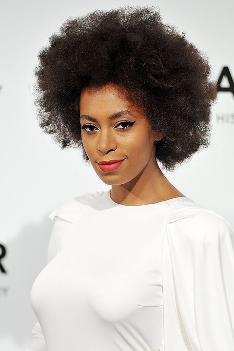 Of course, you can just rock the afro that nature gave you. But, for a little variety, try stretching your hair with a minimal amount of heat to show off your length and achieve envy-inducing volume. For a fluffy, soft effect, try a styling lotion.