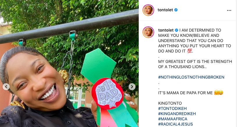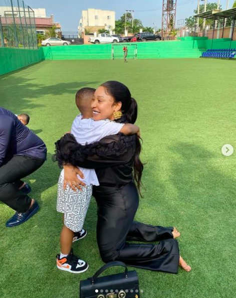 Tonto Dikeh acted as her son’s father at his school for a Father’s Day celebration.