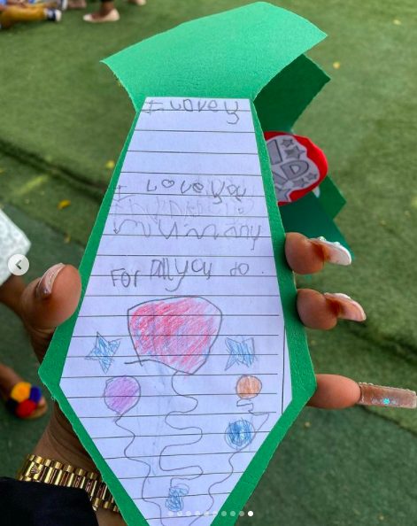 “#1 Dad” is a badge that King Andre designed for her. On the other side of the badge is a sweet handwritten note that reads: “I love you mummy for all you do.”
