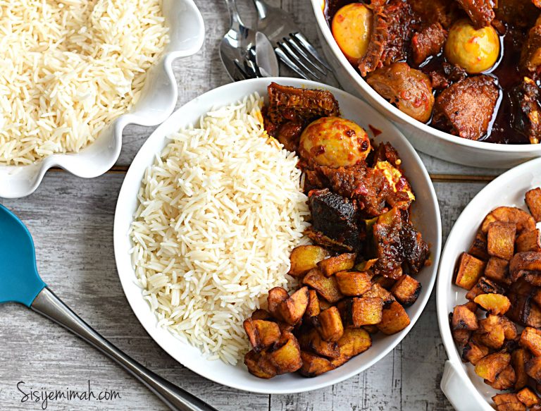 Your palm oil stew is ready to be served with rice, yam, plantain, beans or anything at all.