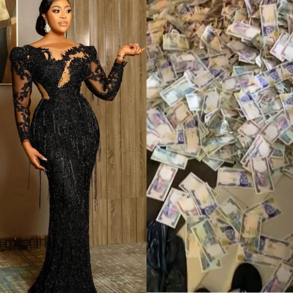 Actress, Mimi Orjiekwe shows currencies from her birthday party