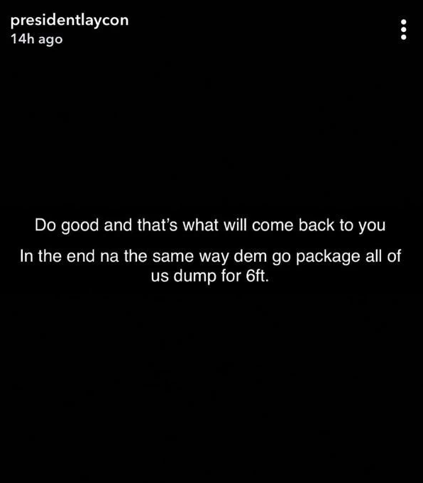 With a lengthy post on his Snapchat, BBNaija winner and musician, Laycon has delivered a message to fake friends.