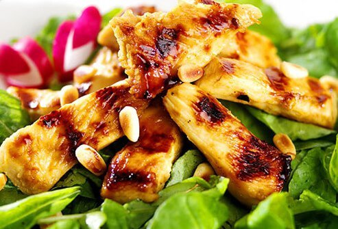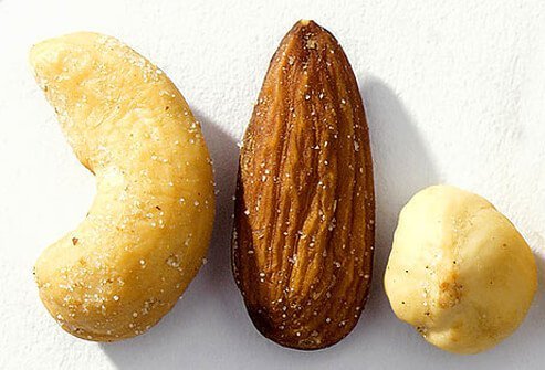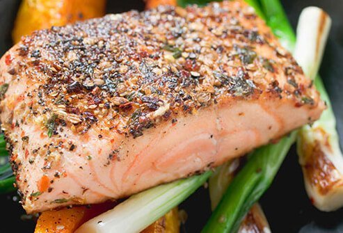 Fatty fish, such as salmon, is heart-healthy due to its omega-3-fatty acid content. The healthy fat content may also decrease the risk of depression. Nuts and dark green leafy vegetables are other sources of omega-3 fatty acids.
