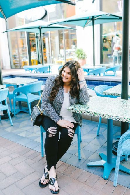 One of the easiest ways to dress up a classic pair of black skinny jeans is with a chic blazer. Have some fun with it and choose a pattern rather than a solid for a little bit of a statement this season. This is a great way to spice up a simple white tee, too