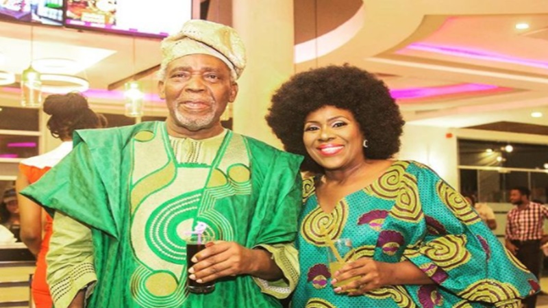 It was a pleasant surprise for Joke Silva, as her husband, Veteran actor, Olu Jacobs, paid her a visit on the set of a new movie she is on. The actor looked so excited as he familiarized himself with the other actors on the set.