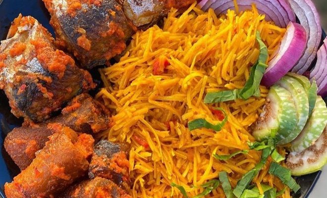 Abacha is one of those delicacies that most people want to have in large quantities. But at Igbo traditional weddings, it is usually served as a starter or an appetizer. The delicious meal is made from shredded and dried cassava.