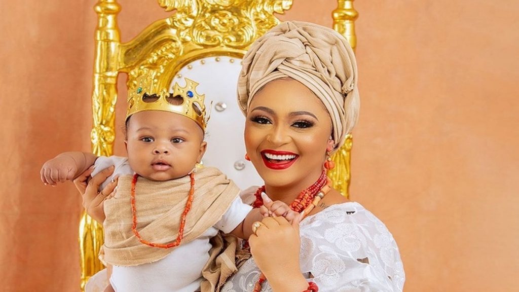 Nigerian businessman and philanthropist, Olakunle Churchill and actress, Rosy Meurer have proudly flaunted photos of their son’s face for the first time.