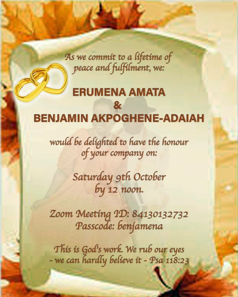 The ceremony holds on Saturday, October 9 say ‘I do’ to her heartthrob, Pastor Benjamin.