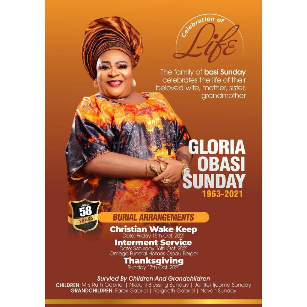 According to the programme posted by Nkechi on her Instagram page shows that Christian wake holds on October 15, while interment takes place on Saturday, October 16.