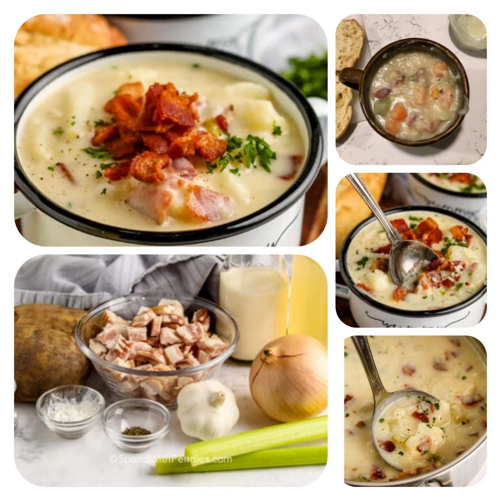 - Stir milk and bacon bits into potato mixture; bring to a boil. Remove from heat and stir parsley into soup.