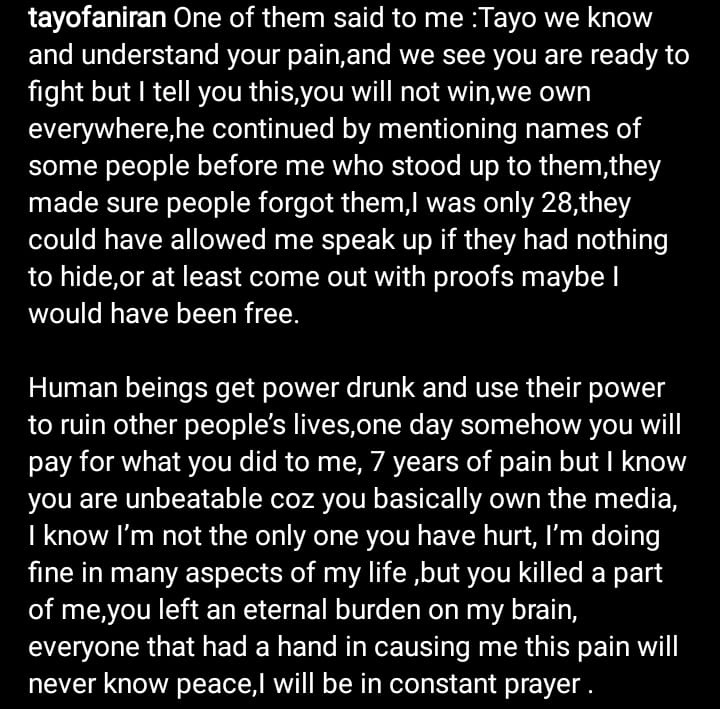 Seven years after the show, Big brother Africa 9 runner-up, Tayo Faniran, has called out the organisers of the reality show.