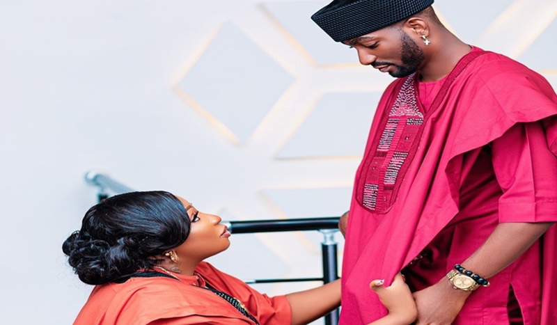 Actress Anita Joseph has released photos of herself kneeling to adjust her husband, Michael Olagunju’s Agbada.