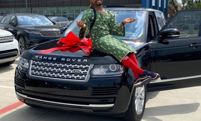 The former Big Brother Naija reality star is seen posing with the white Range Rover that still has red ribbons on it.