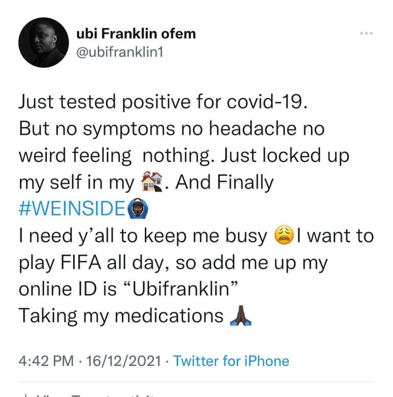 Nigeria music executive and talent manager, Ubi Franklin has said that he has tested positive for COVID-19.
