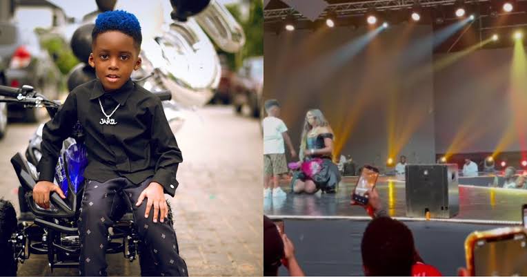 Here is a sweet moment, Tiwa Savage, was surprised by her son, Jamil Balogun while she performed on stage at the Livespot music festival in Lagos.