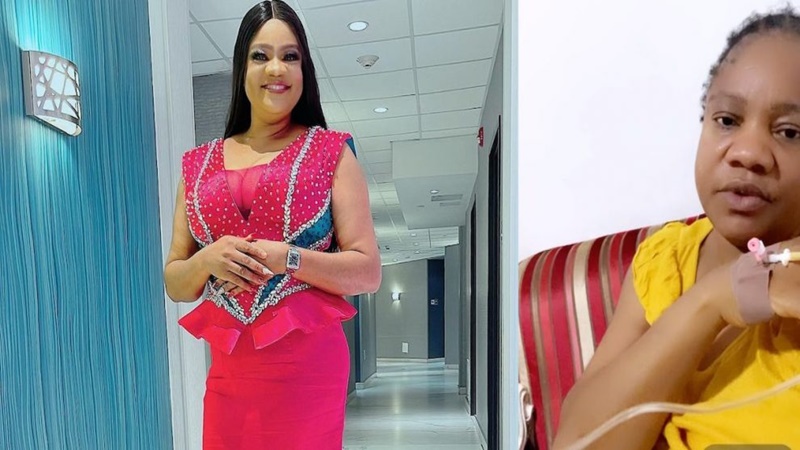 The happily married mum of two has shared a video of herself lying on hospital bed,The Actress revealed how her health was attacked by the devil late January and how the lord Jesus stepped in and gave her victory,