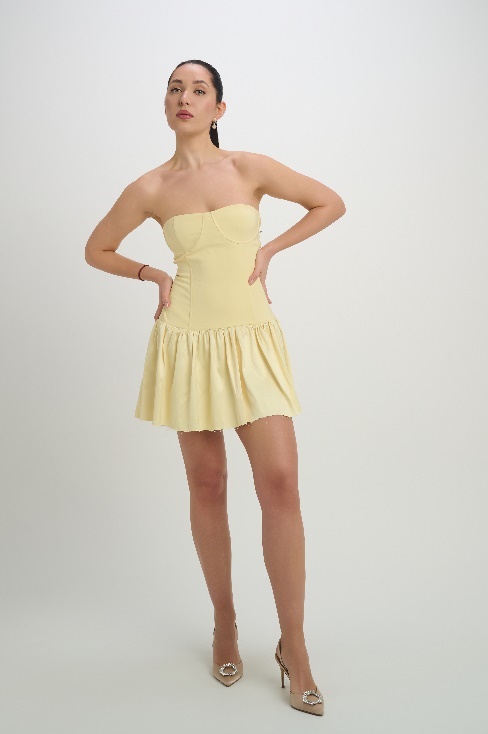 At first glance, it may seem like a dress, a one-fabric outfit. But when you take a closer look, you will see that it is a two-piece design, made up of a top and a mini skirt.