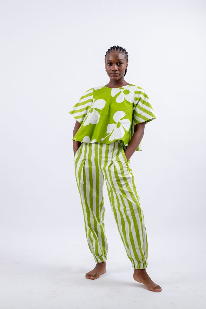 The collection was also inspired by Moyo’s Childhood dreams made up of endless strings of Hibiscus flowers, while the bright colours pay tribute to the bustling Ibadan street markets, and pulsating rhythms of Lagos.