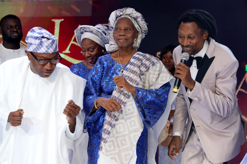 The dozy town of Odoragunshin, Epe, Lagos, came alive last Sunday as top government officials, captains of industries, celebrities and other distinguished personalities thronged in, in honour of Lady Christine Adedoja Otedola, a former first lady of Lagos state and mother of billionaire businessman Femi Otedola, who clocked 90 years.