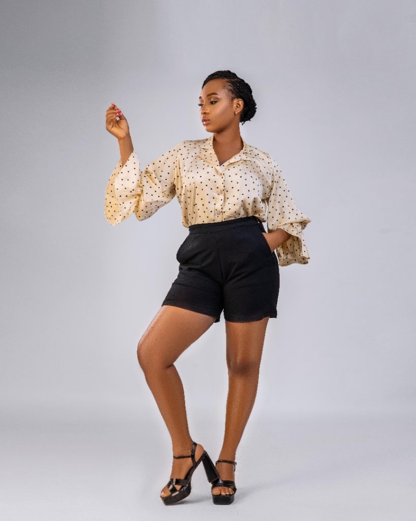Adamu Bright Bulus’sMignonne apparel protects and respects the environment, starting with the small choices we make every day, like the clothes we wear. Our 2020 Collection is crafted using various prints, linen prints, silk, and cotton fabric. The entire Collection blends print fabrics with modern fashion, featuring colourful and lively pieces in baby pink, cream, red, and black. This Collection includes unique and beautiful designs: An Asymmetric knee-length flare dress with blockchain prints, a midi-length shirt dress with newspaper prints, a high-slit flare dress with rope sleeves on the shoulders for a secure fit, a polka-dot skirt with double flared sleeves paired with black shorts and a knee-length overlap dress with straight lace long sleeves for a sheer effect.