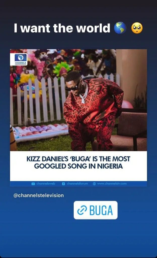 Following his new feat, Kizz Daniel stated that he wanted the world.
