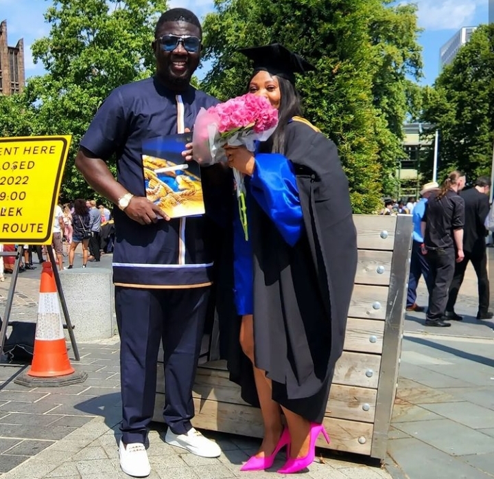 “Yesterday, she walked the aisle as a GRADUATE. She weathered the storm and survived. She lost a 5 month pregnancy, deferred for a year, birthed another child, took care of two children and successfully bagged her BA (Hons.) from the prestigious COVENTRY UNIVERSITY, UK,” he wrote.