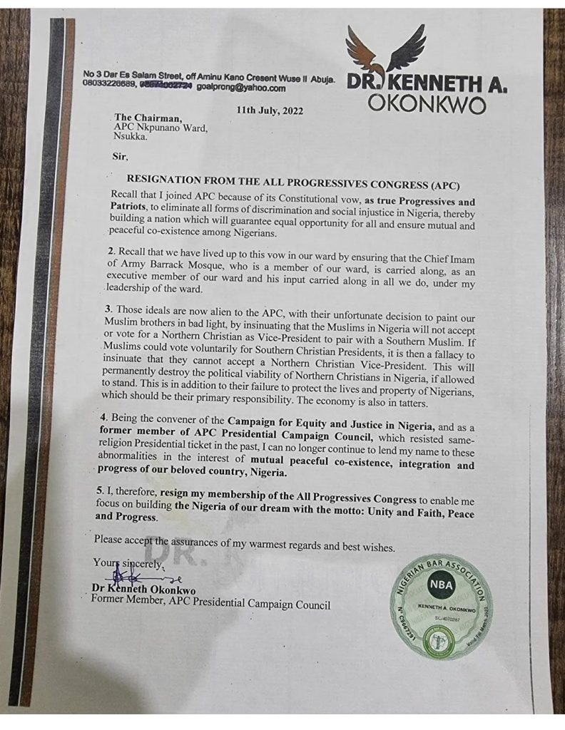 Veteran Nollywood actor Kenneth Okonkwo has resigned his membership from the All Progressive Congress (APC).