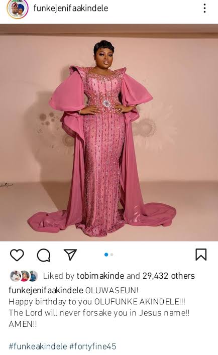 As Funke Akindele celebrates her 45th birthday today, her ex husband, JJC Skillz has taken to IG to celebrate her.