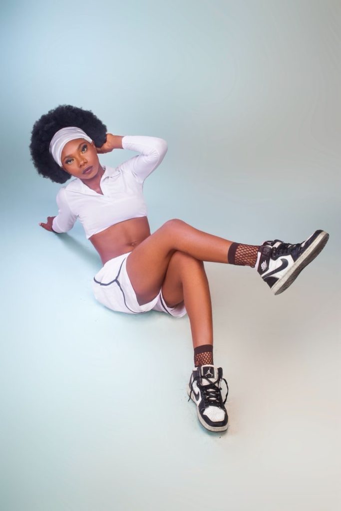 It’s athleisure with narrative, the headband and Afro crown the look with retro romance, while the piping carves the shorts into a deliberate silhouette.