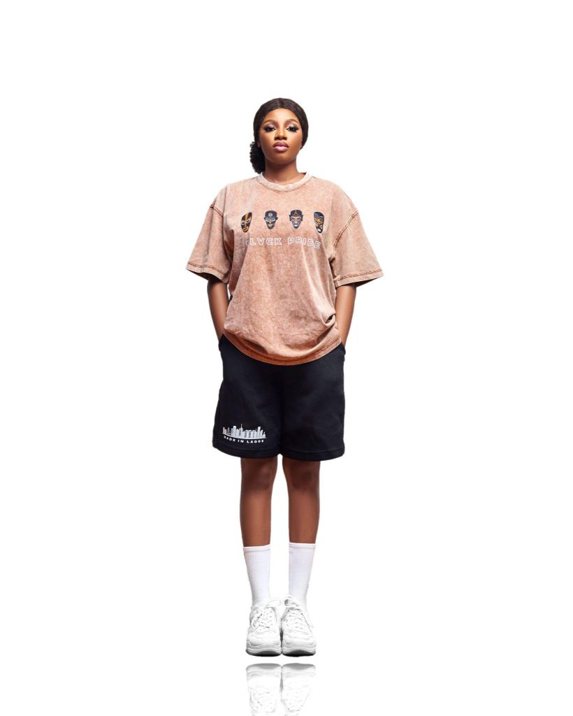 This shirt is a deep reflection of the ongoing conversations on African identity in 2023. It embraces every aesthetic of streetwear while revealing a contemporary style. The designer deserves some accolades for choosing this earthy brown colour, as this shade allows the designs on the front to stand out gracefully.