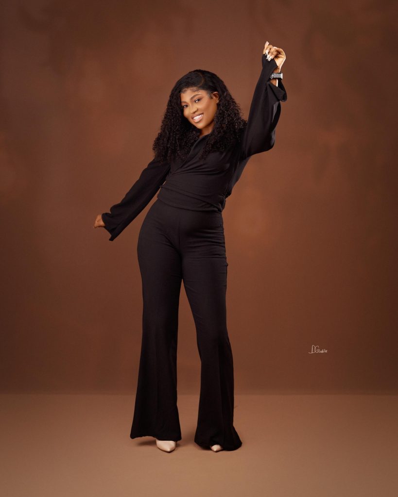 Another standout pieces in the collection is the KASOSA set which demonstrate power dressing. Featuring wide-leg black trousers and a cinched high waist blouse – this all-black look embodies quiet strength and timeless style. Flared sleeves add subtle drama, making it ideal for both elevated daywear and evening elegance.