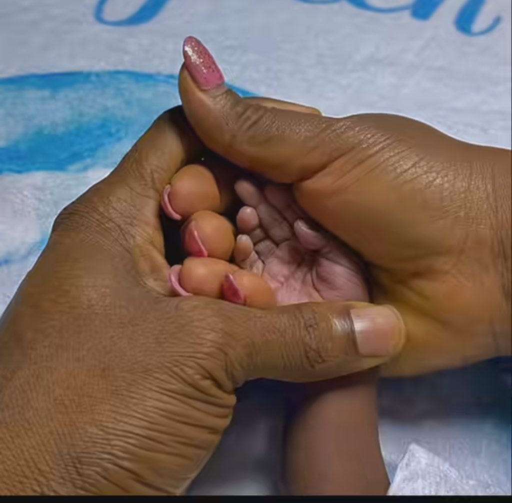 The photo captured a tender moment, showcasing the couple cradling their precious newborn, Jayden’s tiny hand nestled in theirs.