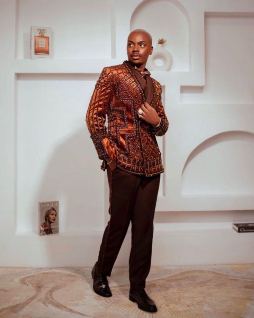 In a sophisticated nod to 2023’s latte fashion trend, Enioluwa Adeoluwa aka Eni stunned in this embellished two-toned Orange Culture suit at the 2023 Africa Magic Viewers Choice Awards in May, strolling home with the Best Dressed Male Award plaque in hand.