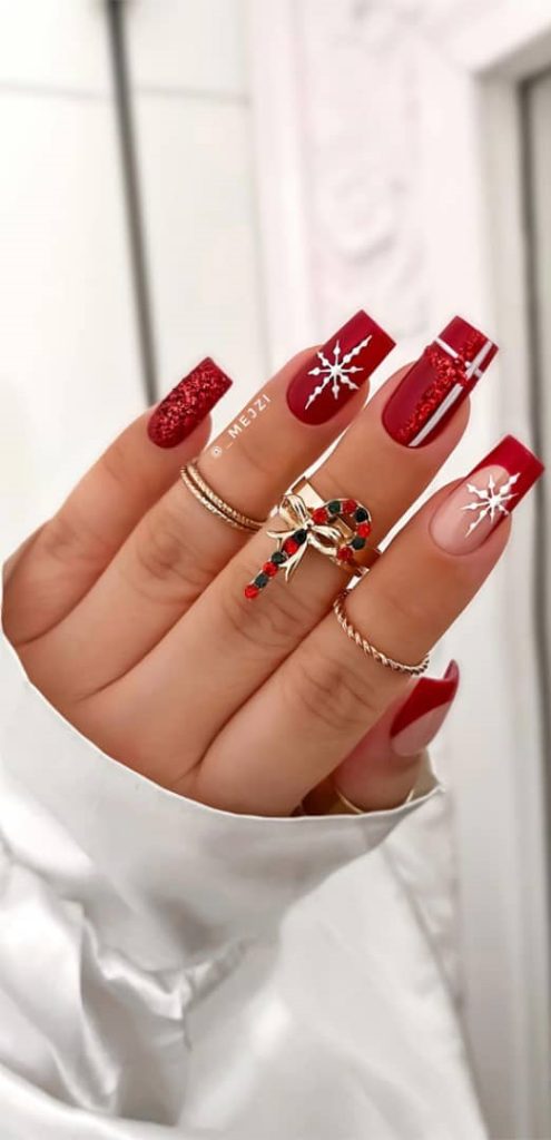 Even if you’re not feeling like getting all dolled up for the parties, let your fab nails do all the talking. Make your nails pop by adding a splash of glittery nail polish), and the classic red and gold combo is so Christmassy.