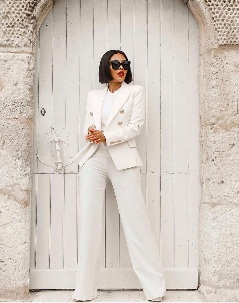 The ideal high-quality pantsuit is a power outfit for any white themed occasion anyday. It has a masculine edge, and its structured shoulder will always command attention, no matter where your schedule takes you.