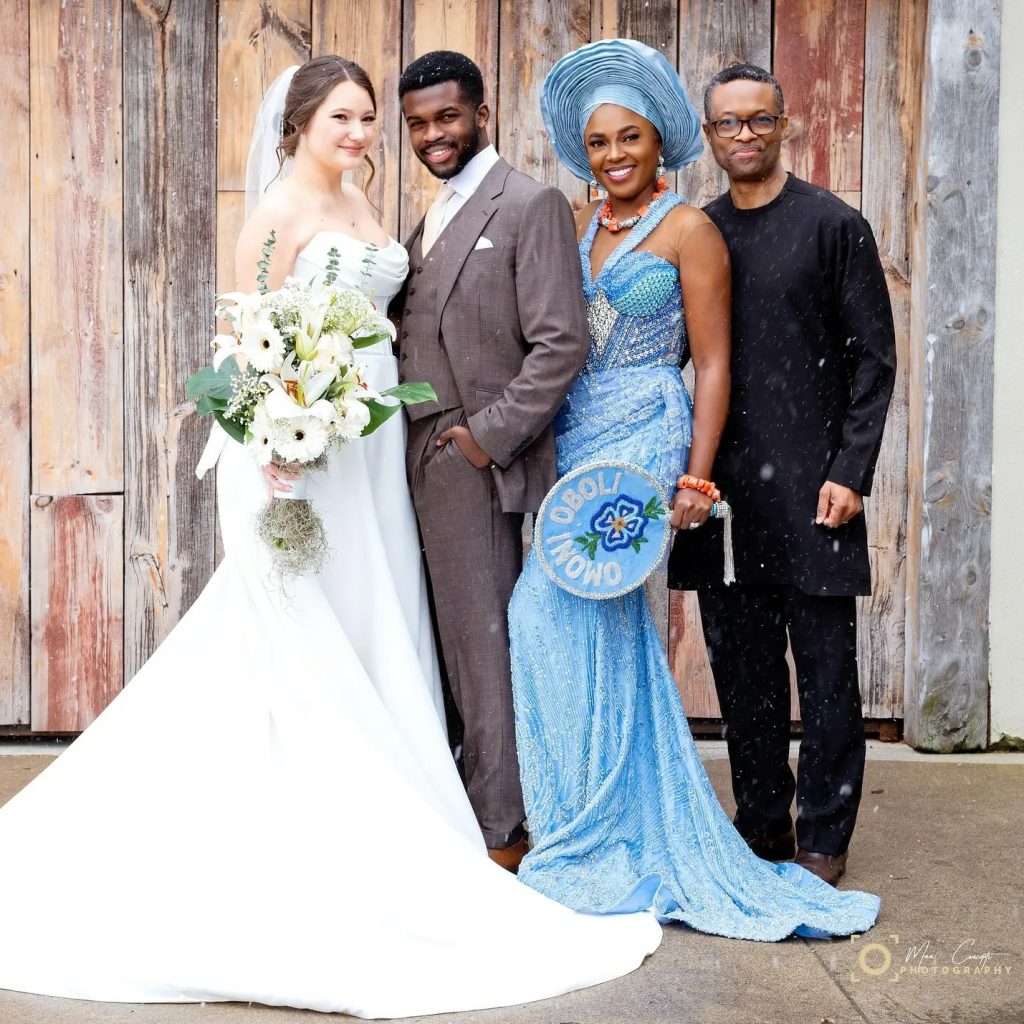 The super-excited mother shared the news on her official Instagram page, with a photograph of her in a pose with her husband, Nnamdi and the newlyweds, with a caption, saying they had a beautiful wedding with close family and friends.