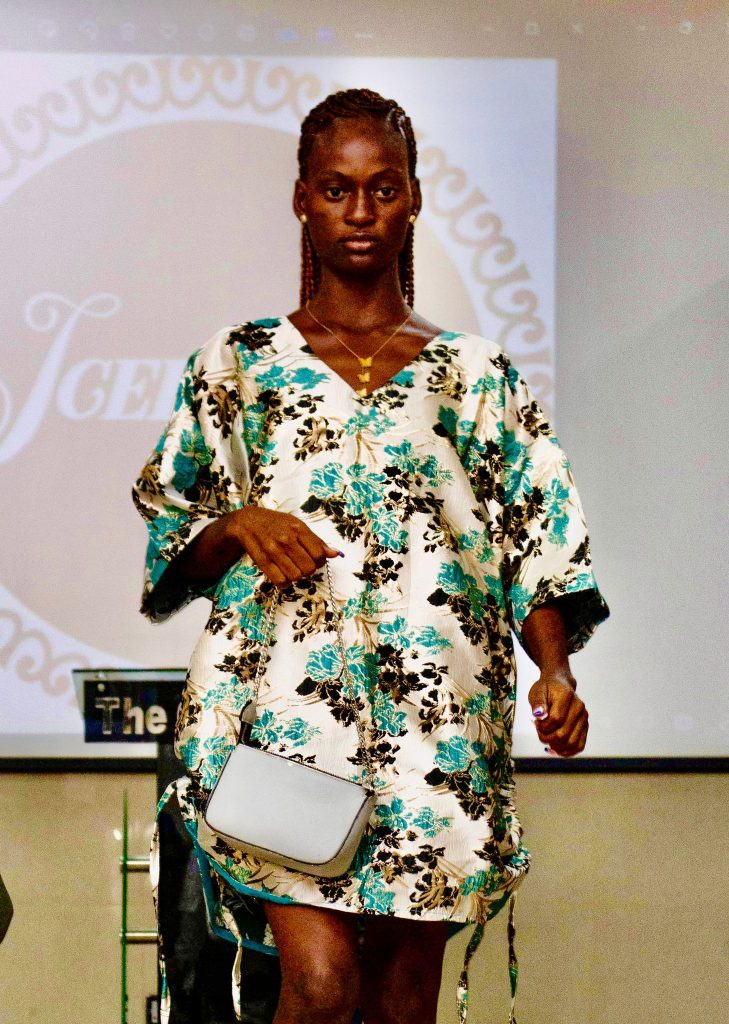 A central theme of the “Hot Ice Collection” is the innovative use of traditional African fabrics. Onwuzuruoha expertly transforms these textiles into modern masterpieces, each piece narrating a story of heritage and forward-thinking design. The collection showcases strapless dresses paired with fluid kimono jackets and reimagined African bubus, highlighting the adaptability and elegance of African textiles in a global fashion context. The choice of fabrics includes hand-woven kente, luxurious Ankara prints, and soft batik, each meticulously selected to embody the richness of African culture. The tactile quality of these materials was evident as models gracefully moved down the runway, each garment exuding both elegance and cultural pride.
