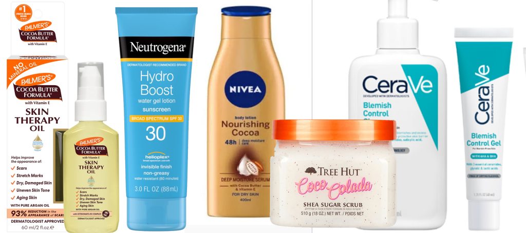 - Palmer’s Cocoa Butter Formula Skin Therapy Oil: This oil moisturizes deeply and improves skin texture and tone.