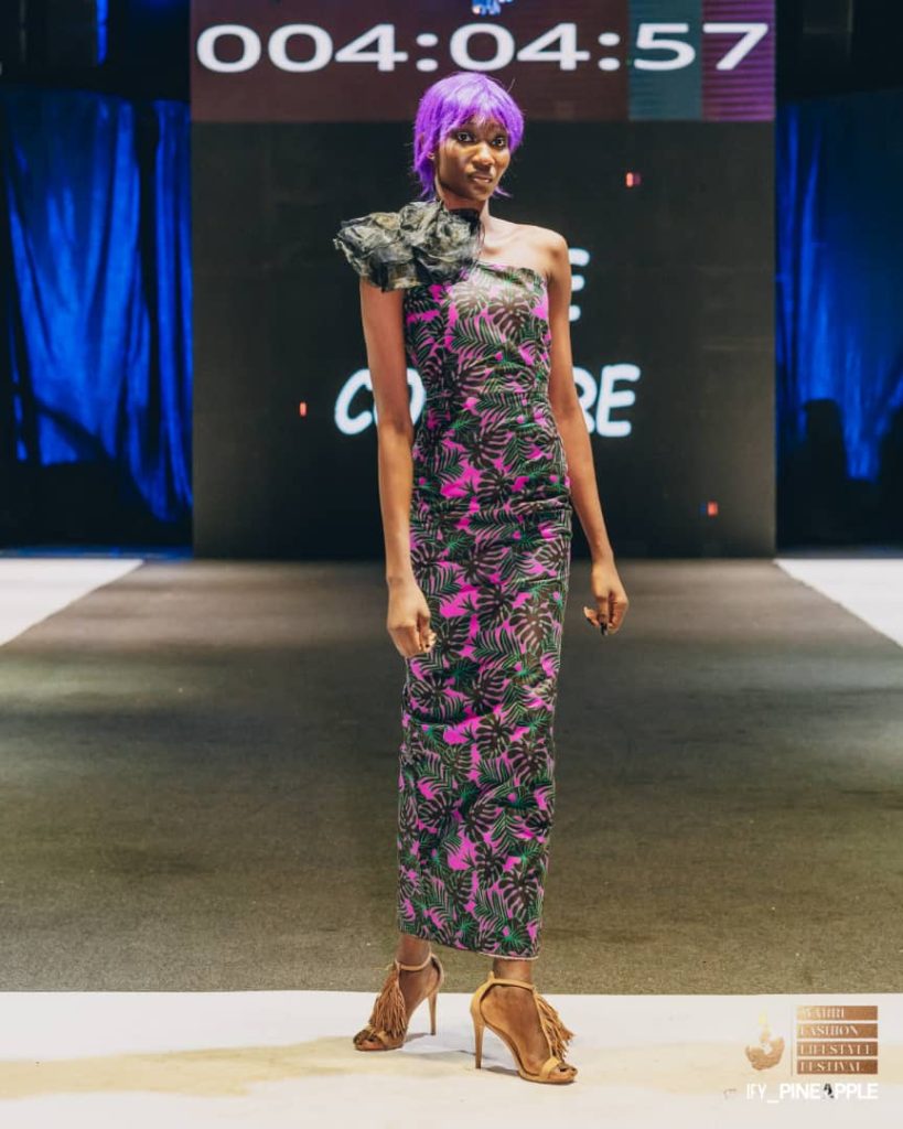 One of the brands whose creation caused a stir of positive expressions, feedback, and applause was Xcite Couture, led by their Creative Director Titilayo Bamiro, who is one of the fastest-developing pattern drafter, draper, and sketch artists with an intuitive approach to producing trend worthy fashion products.