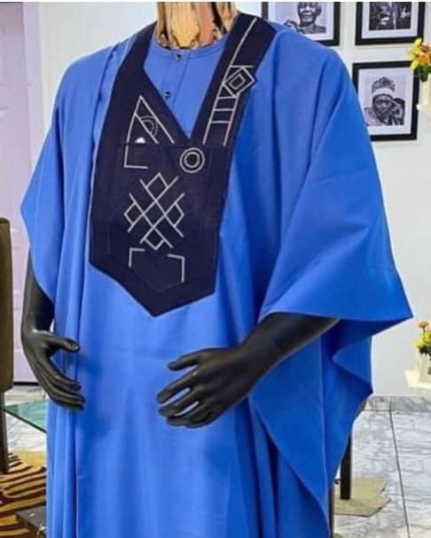 A few of the shirts in the collection have necks that are round or square with embroidered designs that are different from each other. Other shirts in the collection are buttoned or round-neck, usually worn as regular shirts or undergarments for agbada. The trousers have single or double pleats alongside drawstrings or elastic bands at the waist.