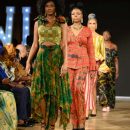 This collection is adorned with beautiful and intricate beading and embroidery, and is complemented with coordinating headpieces, all of which come together to emphasize the African influence of the overall appearance.