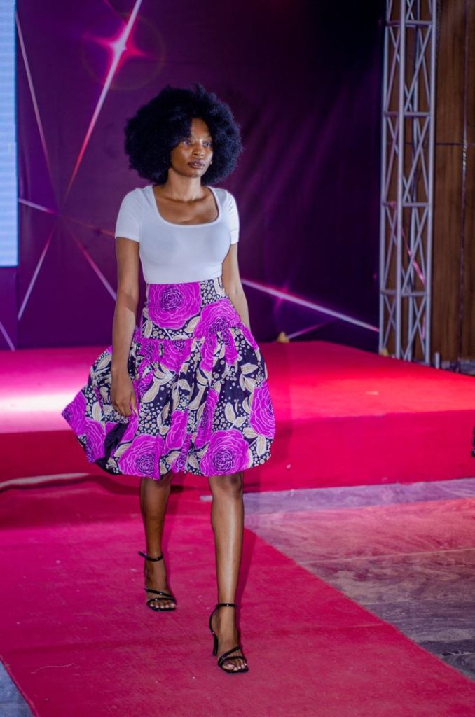 This collection is a series of Ankara skirts and gowns that offer a blend of bold structural choices and thoughtful detailing. The pieces included a one-sleeved gathered gown, high-waisted flared skirts, armless two-tiered gowns with soft gathers, and a tiered flared gown adorned with a detachable crop-top jacket; all aiming for versatility within a cohesive theme. Each piece testified to the skill of a designer with good knowledge of style, balance and proportion. For example, the one-sleeved gown defined Deborah’s illustrative talent, with each gathered fold placed meticulously to create a dynamic sense of flow that complemented the patterns of the Ankara fabric.