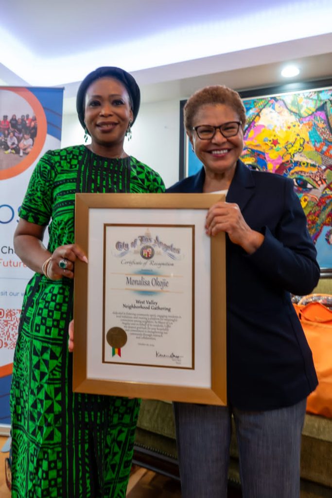 Monalisa Okojie, a United States-based Nigerian entrepreneur and philanthropist recently hosted a reception at her residence in the US to honour Los Angeles Mayor Karen Bass.