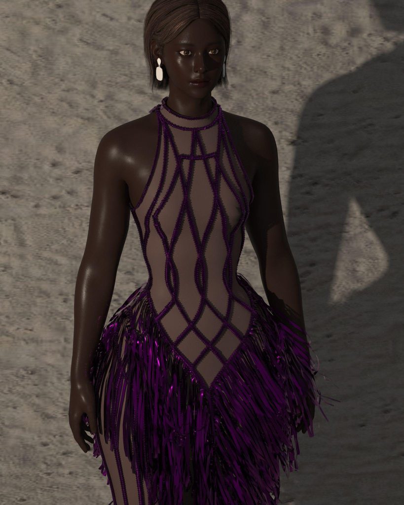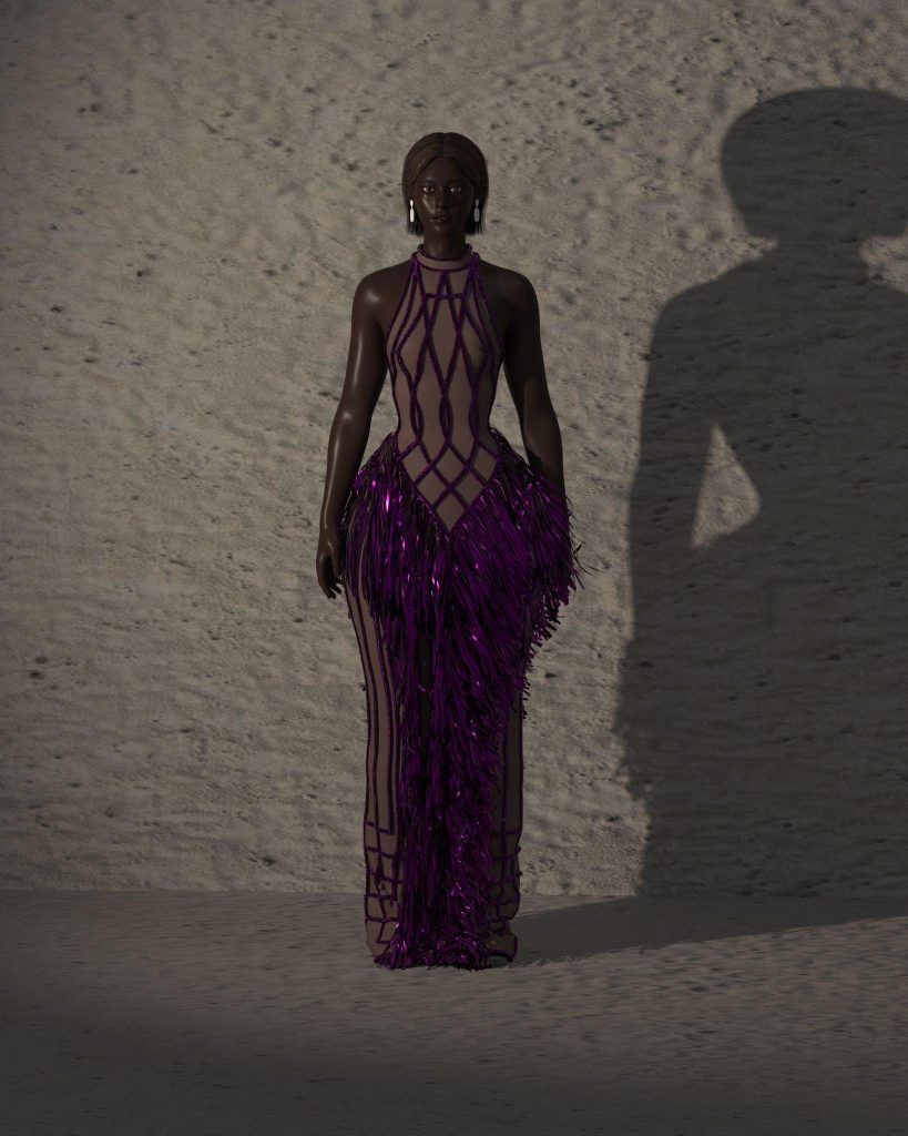 It was a fascinating virtual dance between art, fashion, and technology. When seen through this digital lens, the clothes—elegant, structured, and based on Afro-contemporary styles—took on a new meaning. The 3D environment made textures shimmer, drapes move, and details look like they were being looked at with a microscope.