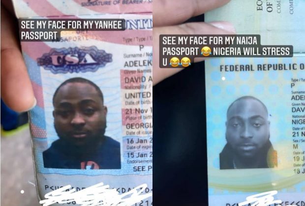 “Nigeria will stress you”- Davido says as he shares the different ‘faces’ he wore on his American and Nigerian passport